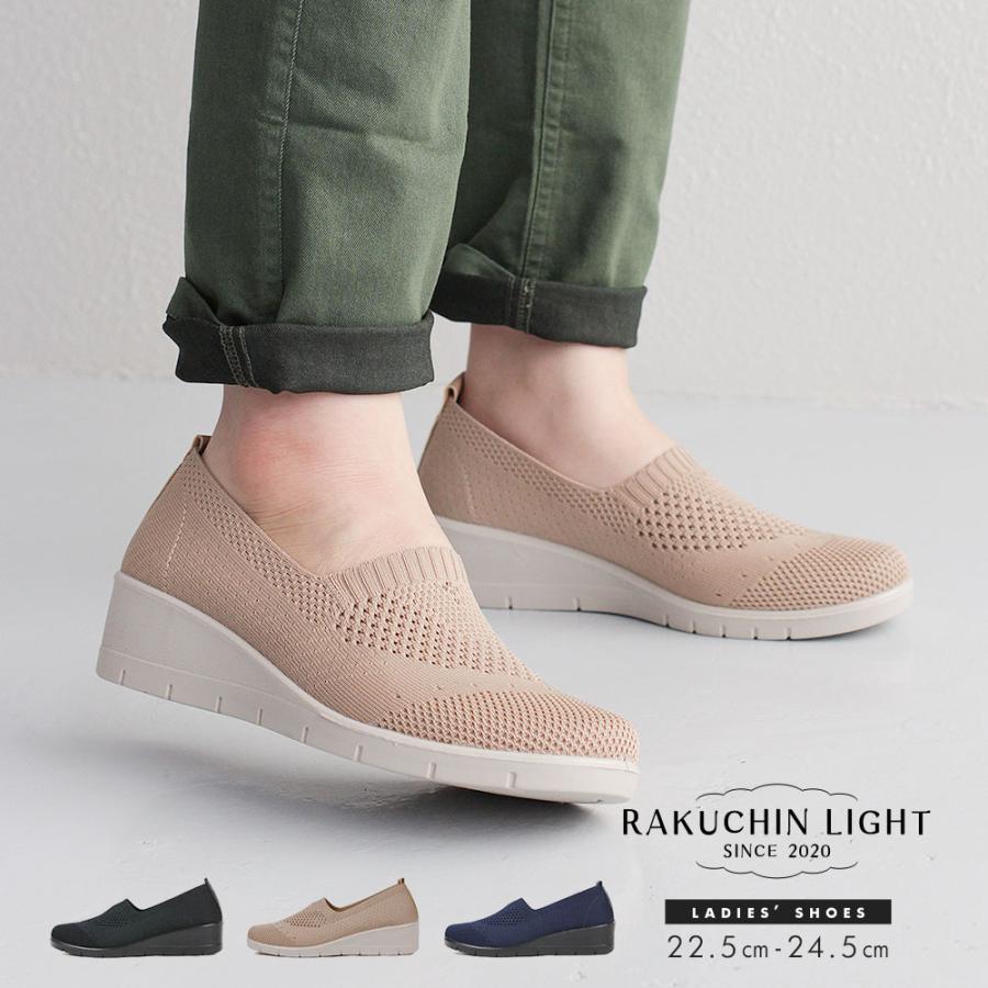軽量 ニットシューズ スリッポン レディース 黒 ウェッジソール 履きやすい 歩きやすい 疲れにくい 軽い 通気性 スリッポン ブラック ベージュ ネイビー 541 454 S Mart Paypayモール店 通販 Paypayモール