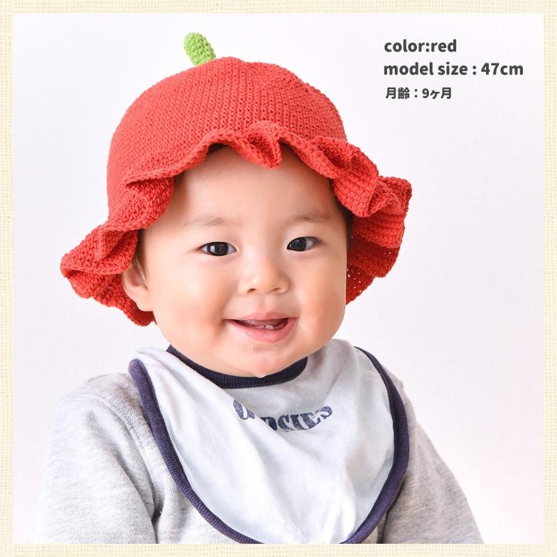 ベビー帽子 赤ちゃん 夏 春夏 日本全国 送料無料 手作り 新生児 日除け 46cm 48cm ハット ベビー 綿100 6ヶ月 1歳 かわいい やさいんニットチューリップ